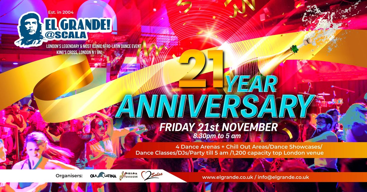London's legendary and most iconic Afro-Latin dance event returns to celebrate 21 years of service to the community of Latin dance lovers in London and the UK!