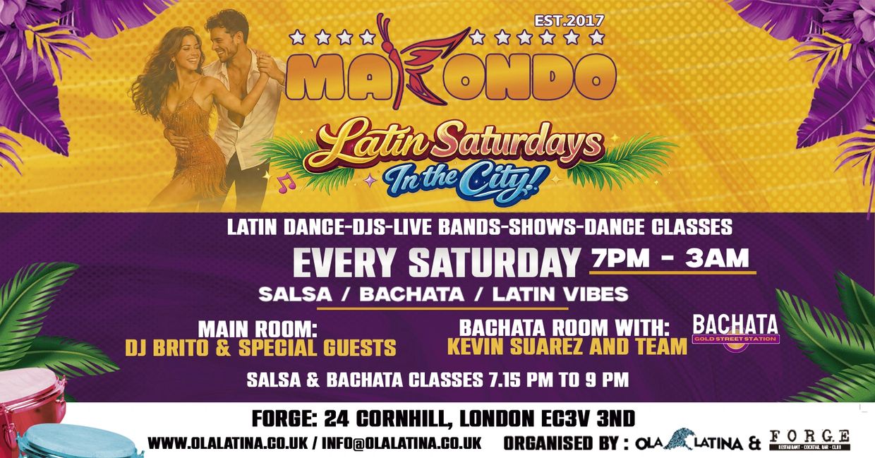 Salsa, Bachata and Latin Beats in the City Every Saturday.